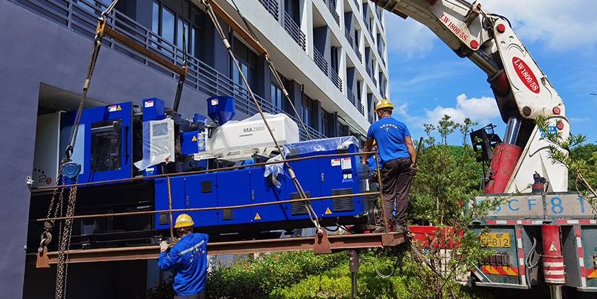 首先要根據注塑機的大小和種類,做出相應的裝卸搬運方案,如果注塑機重量過大,可以拆解注塑機后再進行搬運,若注塑機存在其他配件,也開拆解后搬運。將注塑機搬運至提前規劃好的堆放地區,然后由叉車將注塑機叉至運輸車上,運送至新地方,根據注塑機需要搬運的位置,通過坦克輪或者氣墊進行移位,若需要吊裝,則由專業的吊裝人員吊至指定樓層,再進行搬運,確認落位后,再進行設備的檢查調式。